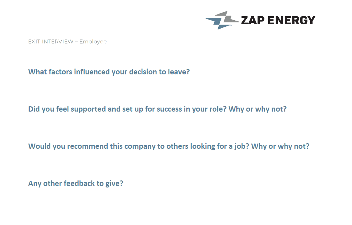 When an employee leaves the company, I sit down with them and ask a series of questions about the circumstances of their departure, and the nature of their experience at the company.